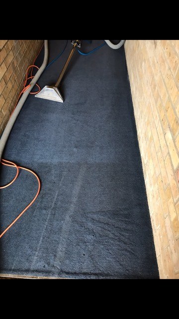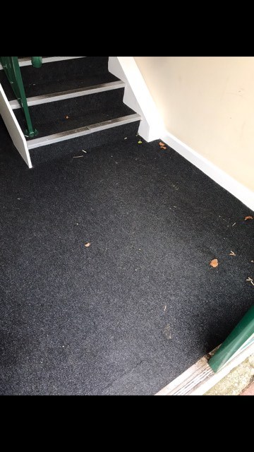 The carpets throughout the blocks were deep vacuumed as usual and were then treated with a High Performance Pre Spray which was then agitated into the carpet, this was allowed to dwell for 10 minutes breaking down the remaining soil. We then cleaned the carpets using a Hot Water Extraction system with a detergent in the water which would allow us to penetrate and remove the soil whilst rinsing it through. Carpets in communal areas are usually a “Button Backed” style of carpet which are hard wearing and quite resilient due to the amount of traffic they have to endure, therefore we can use stronger solutions and be more aggressive than we would normally be with domestic carpets. If the carpets are heavily soiled we can use a rotary system which gives us extra agitation helping us to break down the soil quicker whilst cleaning, you can see the Rotovac 360i in action via the link to our Apartment Block page on our website.