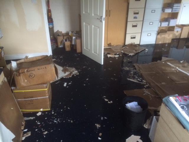 We were able to remove the water and dry out the offices so work could continue without Macflex loosing any work hours or business, the company then needed to liaise with their insurers regarding any mould spores and the possibility of replacing the carpets..