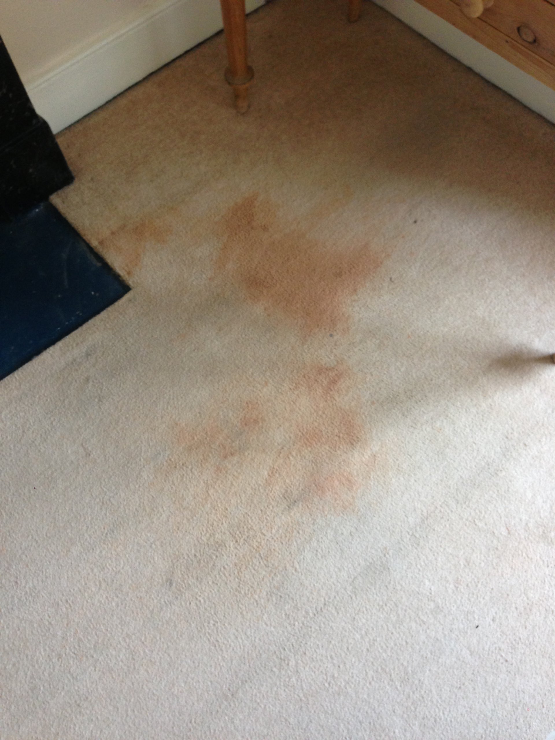 To avoid such horror stories we now sell our customers our own professional spotter which has a neutral PH level so its not harmful and will deal with most stains, we will even show you how to use it or you can just call us for advice or our spot & stain removal service.