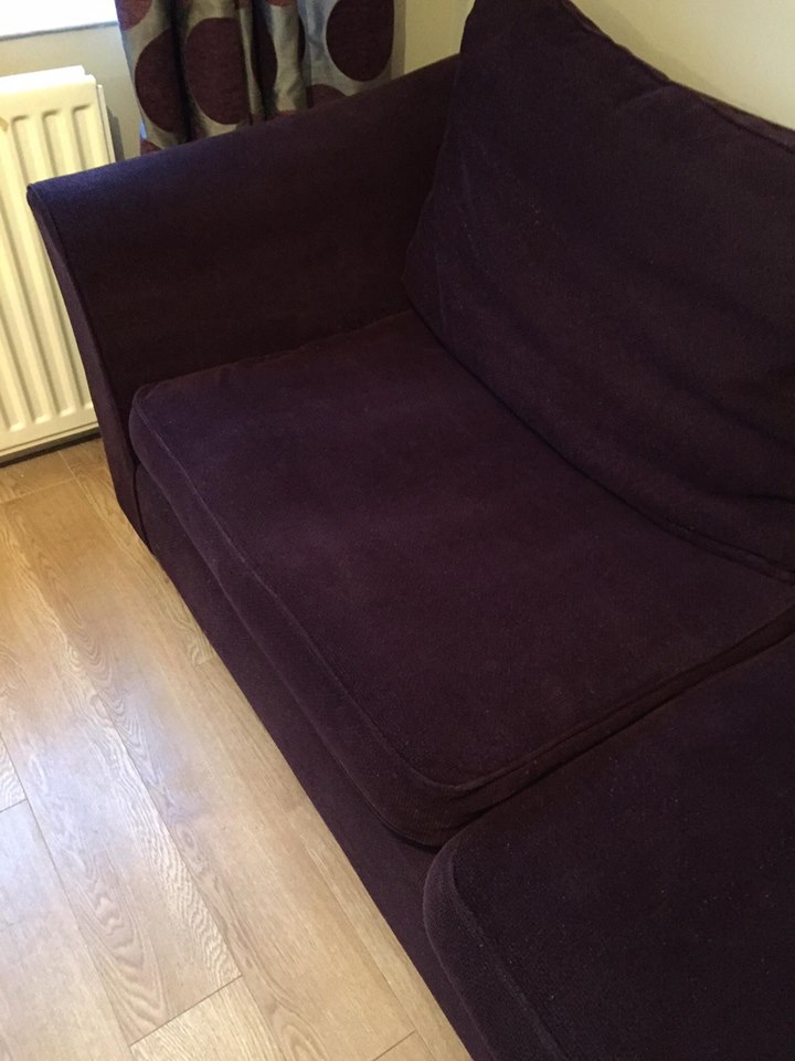 We were contacted by a customer and asked to carry out upholstery cleaning to his 4 seater couch and two armchairs. The customer had 2 small children, pets and worked in the building industry and in his words the suite had taken a 7 year beating!